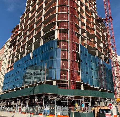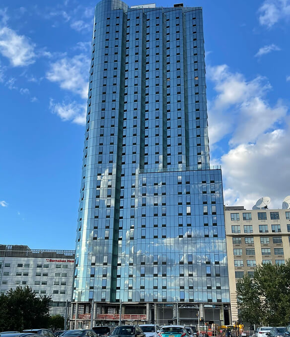 Located in Jersey City, New Jersey, 88 Regent is a striking 32-story development envisioned as a gateway to Downtown. The building will offer 392 rental apartments, 9,110 sq. ft. of ground-floor retail space, and over 5,000 sq. ft. of office space. A multi-level garage with over 300 parking spaces will be integrated within the structure, hidden from view to maintain the building’s sleek aesthetic. The building’s corner will be rounded, creating a welcoming public plaza that seamlessly connects to the lobby and retail areas, and provides easy access to the nearby Hudson Bergen Light Rail station. Offering breathtaking views, 88 Regent is designed to enhance its surroundings, providing a modern, iconic identity for Liberty Harbor North and becoming the neighborhood’s most desirable address.